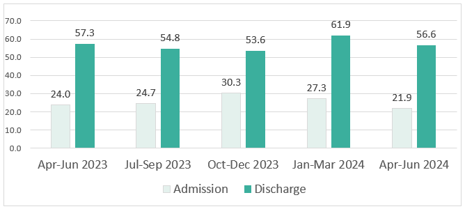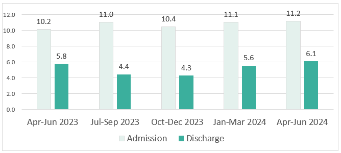 To assess the improvement in a patient’s mental health, Ramsay Health Care uses the MHQ-14 (Mental Health Questionnaire), which is an internationally recognised scale. The MHQ–14 is a patient self–report measure consisting of items that address symptoms of fatigue, anxiety and depression and the impact of those symptoms on social and role functioning. On admission and again prior to discharge, the patient assesses their mental health status. An increase in the score on discharge indicates that the patient has noted an improvement in their mental health conditions since their admission.